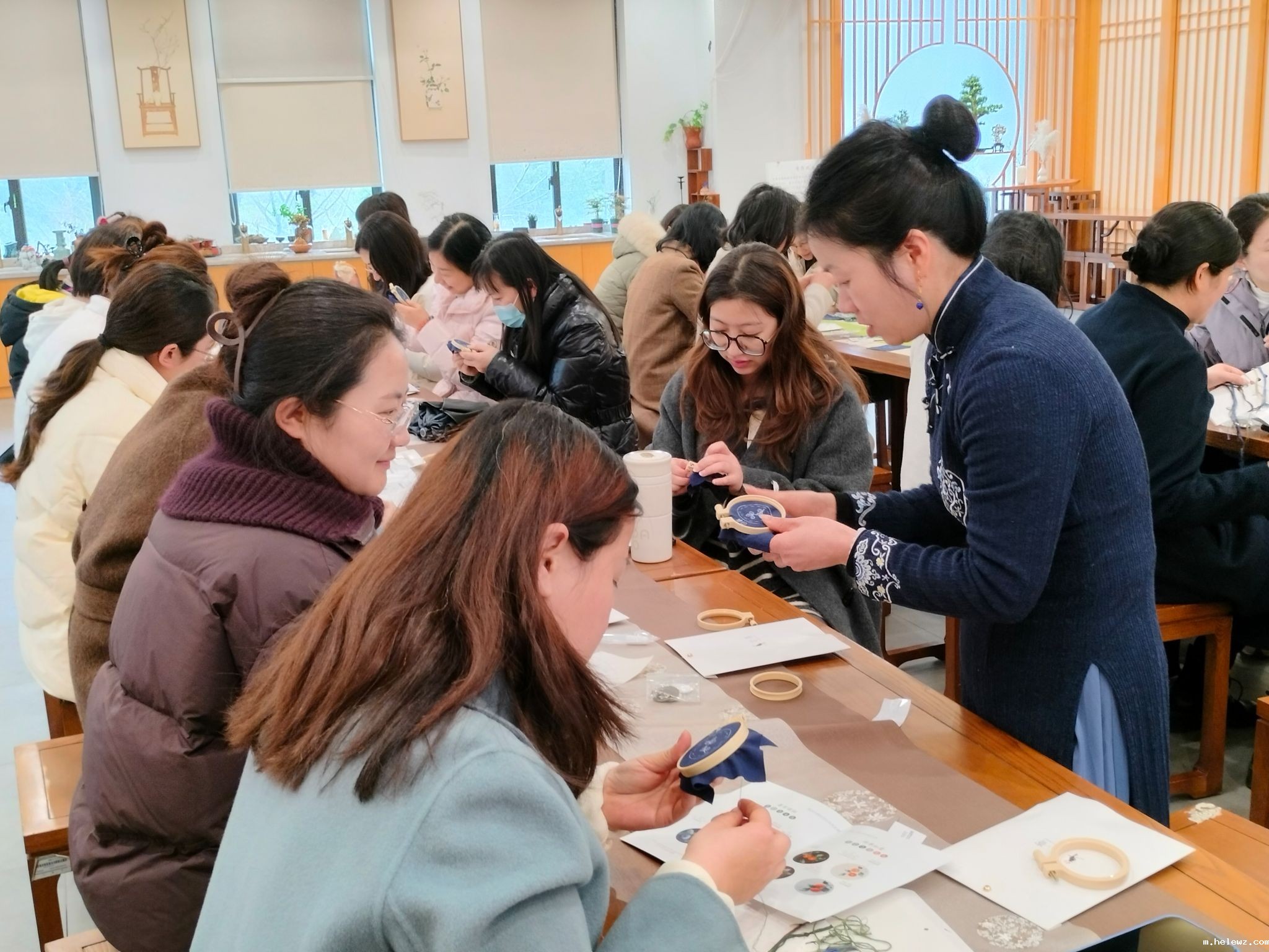 3月5日,茶香氤氲的茶文化实训中心内,由图书馆与旅游规划与设计学院联袂呈现的刺绣胸针工坊如约开启。专业导师从平针绣、打籽绣等传统技法切入,带领老师们穿梭于经纬之间。随着丝线在素绢上渐次绽放,一枚枚融合现代审美的苏绣胸针跃然指尖,传统非遗在当代知识女性的巧思中焕发新生。