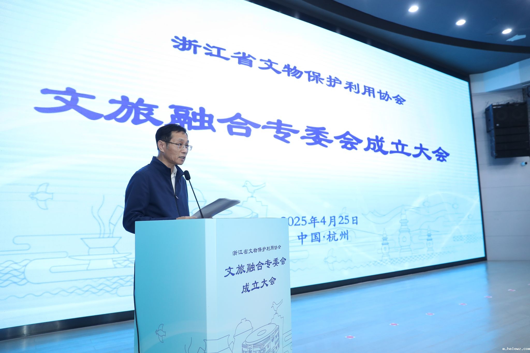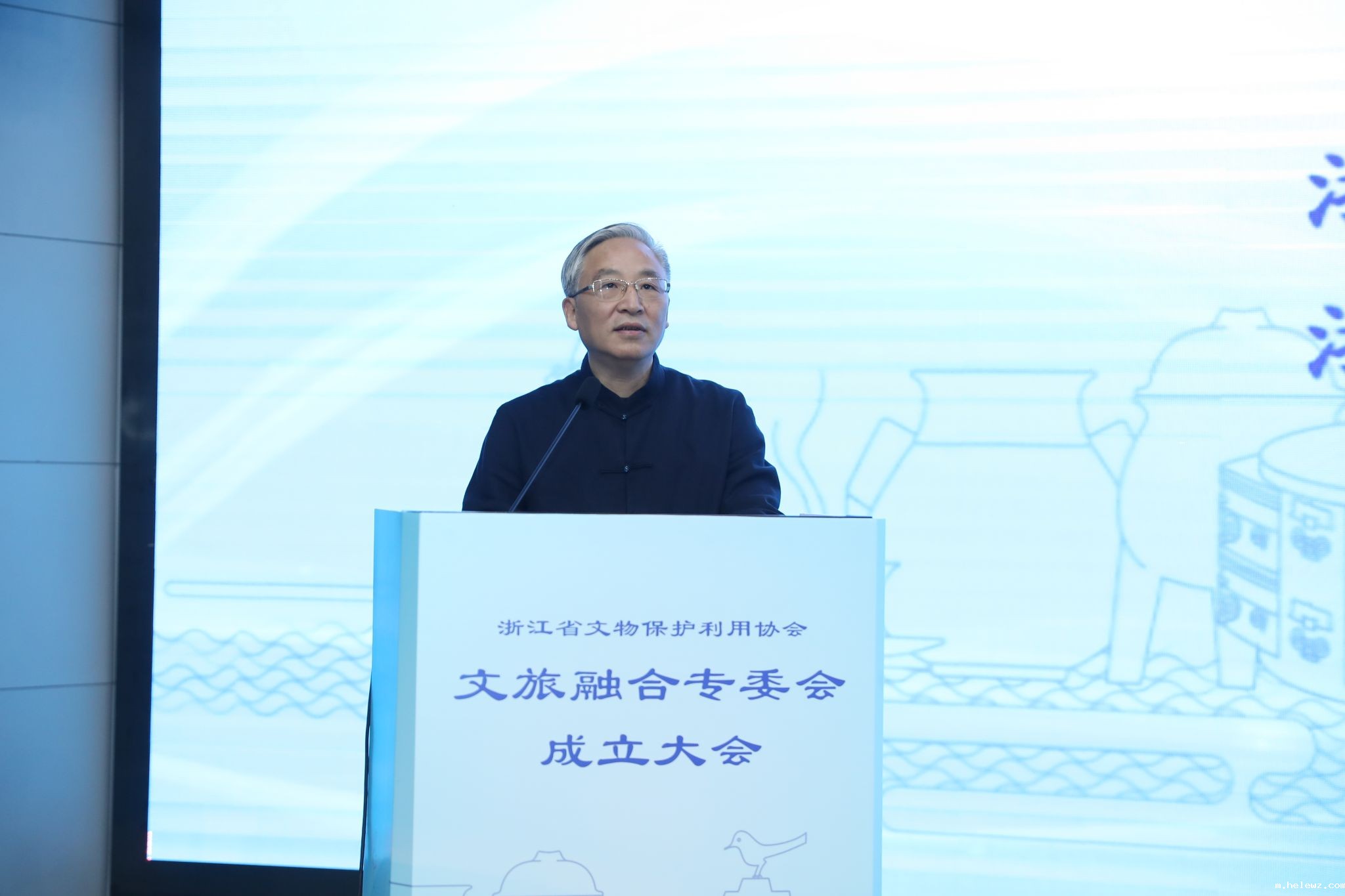 会上,毛东辉代表学校致辞。他介绍了我校的基本情况和办学特色,指出专委会的成立是文物与旅游的亲密“牵手”,是推进文旅深度融合发展的重要举措,必将为文物和文化遗产资源的创造性转化和创新性发展注入新的动能,为我省文化基因激活工程开辟新场景。他表示,学校将全力支持专委会的各项工作,积极推进校地合作、校企协同、产教融合,希望与文物保护利用协会、文旅融合专委会成员们携手共绘浙江文旅融合发展的美好新图景。