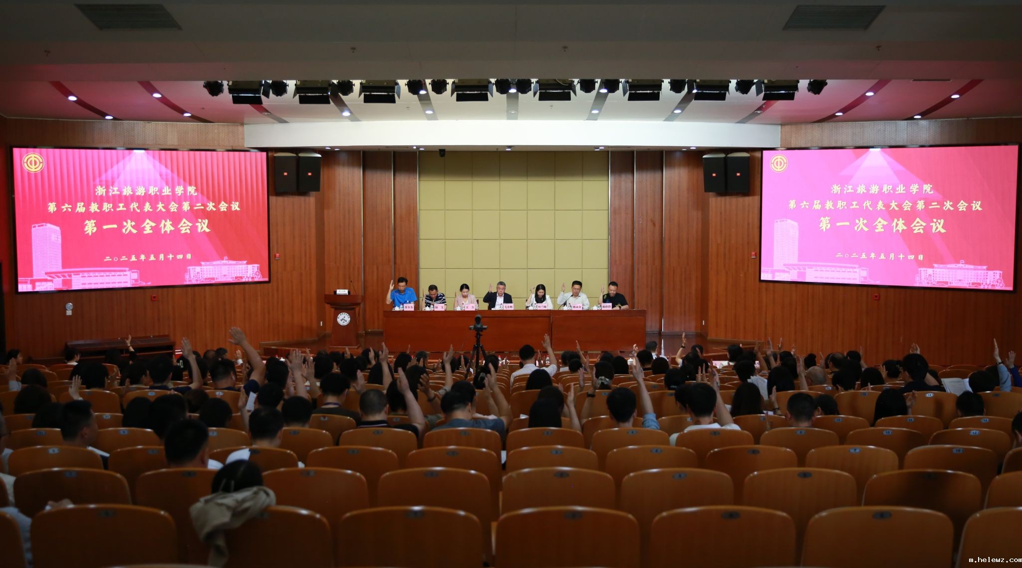5月14日,学校第六届教职工代表大会第二次会议在勤进楼二楼报告厅召开。学校党政领导、教代会正式代表以及列席代表共190余人参加会议。会议由党委委员、副校长、工会主席韩永良主持。