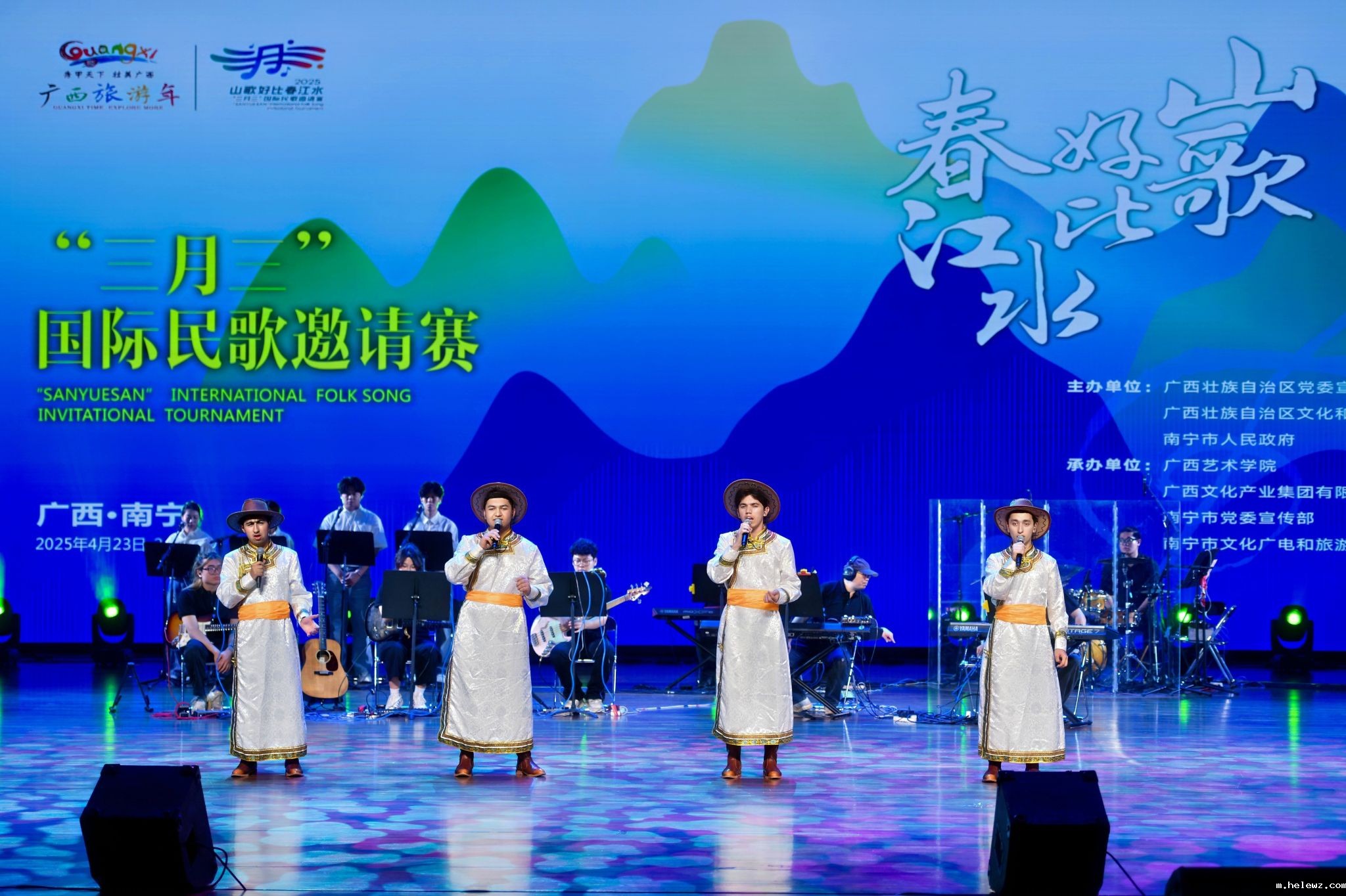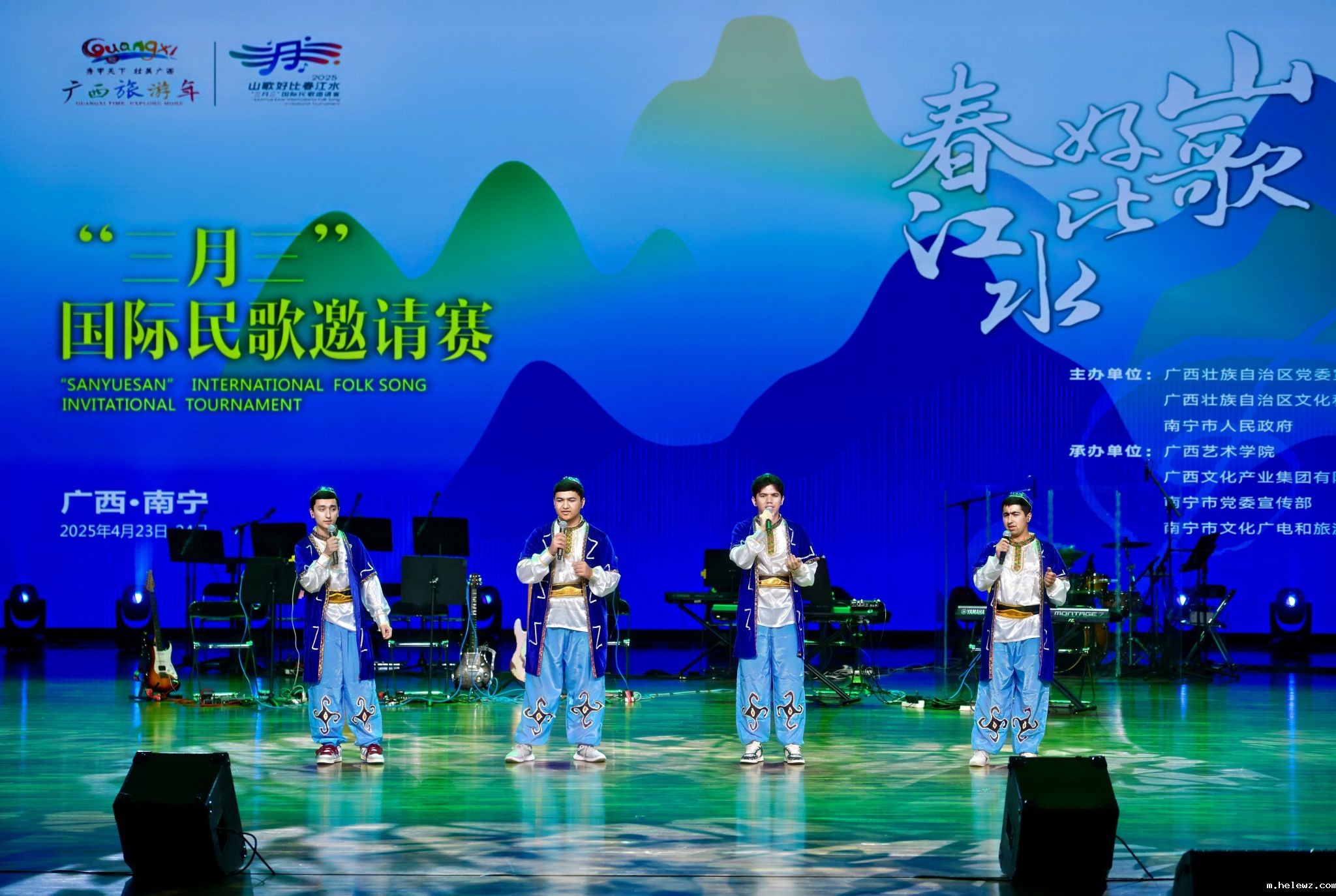 近日,“山歌好比春江水——2025年‘三月三’国际民歌邀请赛(高校组)”在广西民族剧院举行。我校塔吉克斯坦籍留学生苏汉、阿布巴克尔、法鲁木兹、迪洛瓦和韩国籍留学生朴首泫代表学校参赛,荣获2项“优秀演唱奖”。